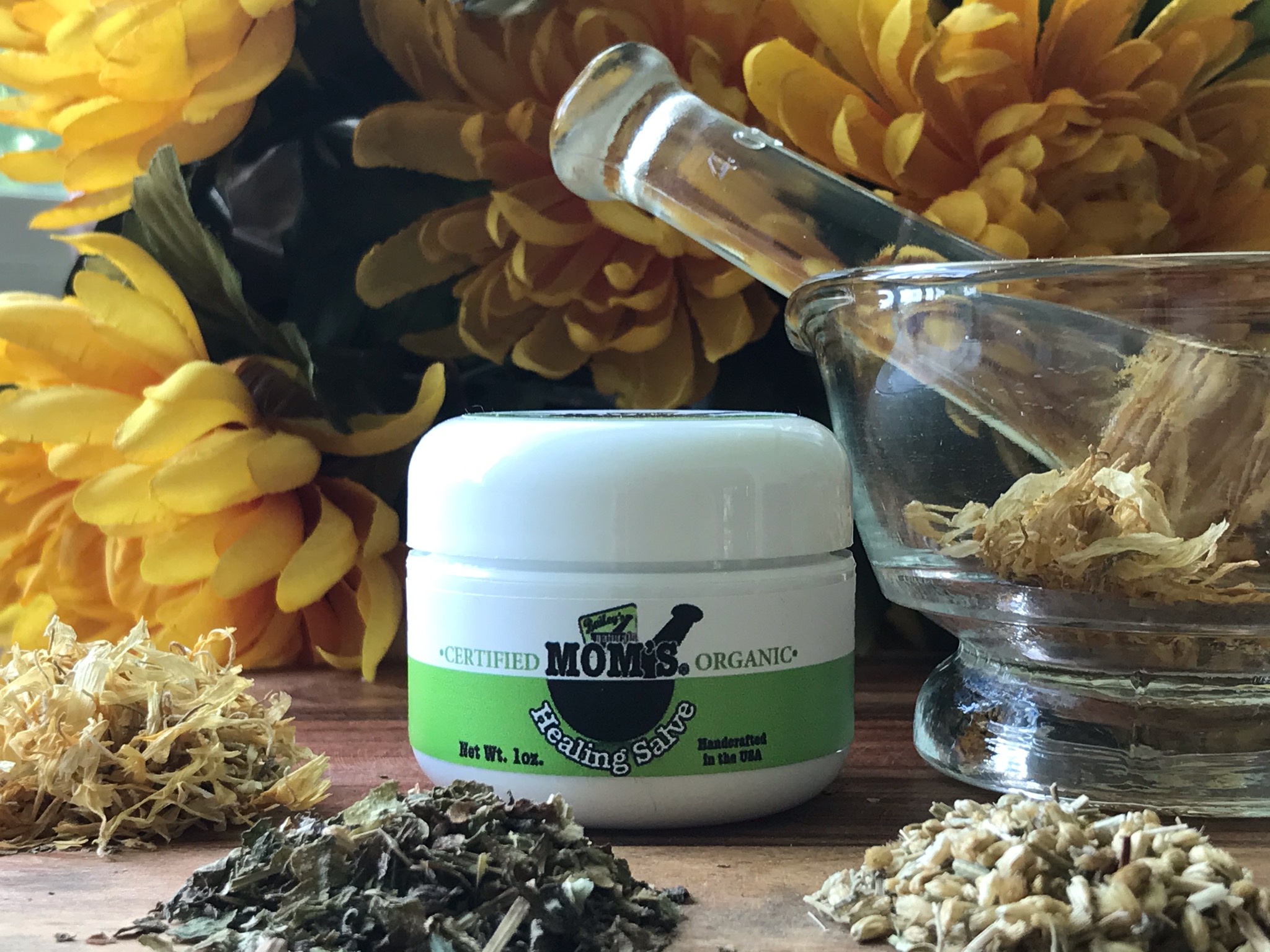 Mom’s Healing Salve is handmade in small batches using an ancient infused-oil technique, with the finest organic ingredients available: calendula, comfrey, plantain, yarrow, lavender, lemongrass, olive oil and natural unbleached beeswax sourced from a Florida beekeeper.